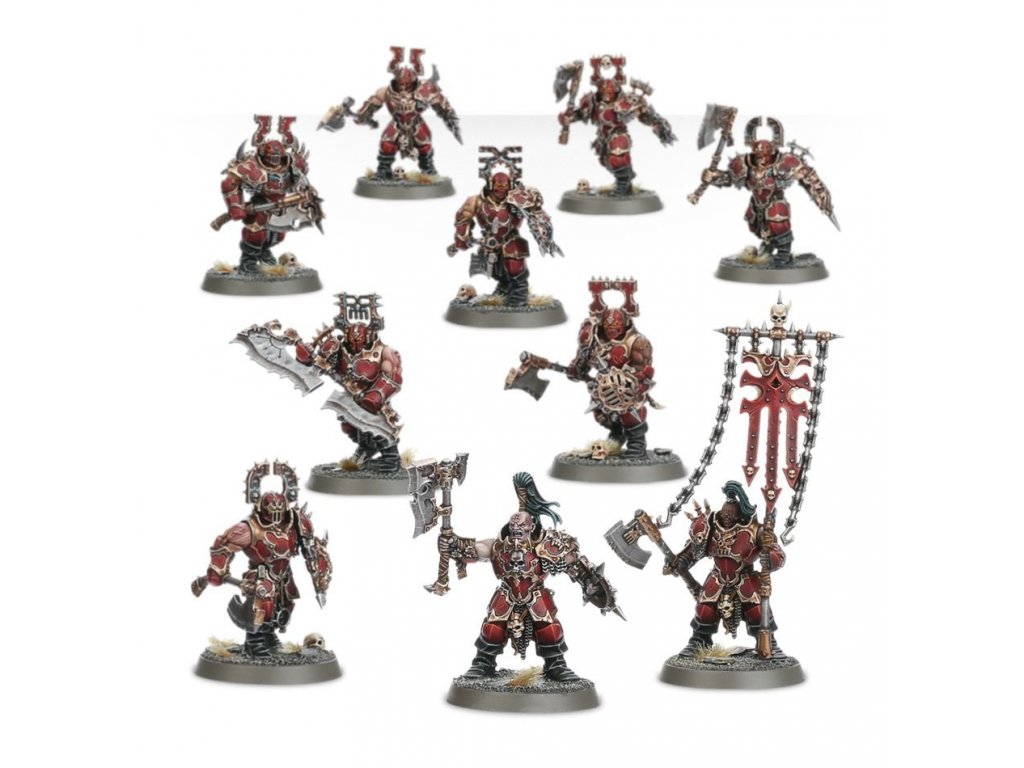 This multi-part plastic kit gives you everything necessary to build ten Blood Warriors. You’ll get some impressive customisation options - each can be armed with either a Goreaxe and Gorefist or two Goreaxes. One model can be built as Chaos Champion with a special, even more intimidating axe; this really is a kit for the axe-inclined among you! One model can be upgraded with a special weapon, the Goreglaive, and one can be built as an Icon Bearer. Includes ten Citadel 32mm Round Bases.