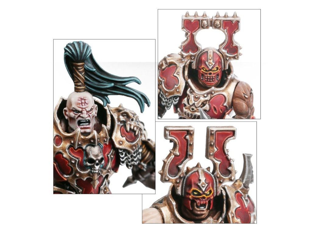 Creatures whose rage has taken them over completely, who know nothing but the appropriate red mist of anger, whose fury is such that it literally radiates off them in visible waves of livid heat, the Blood Warriors of Khorne are a mass of intense aggression and sheer bloodlust. Even striking one down offers no respite, as even the most traumatically wounded of these terrifying warriors will fight on in a trancelike frenzy.