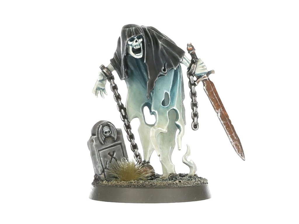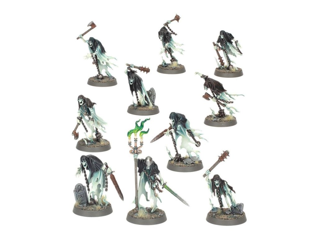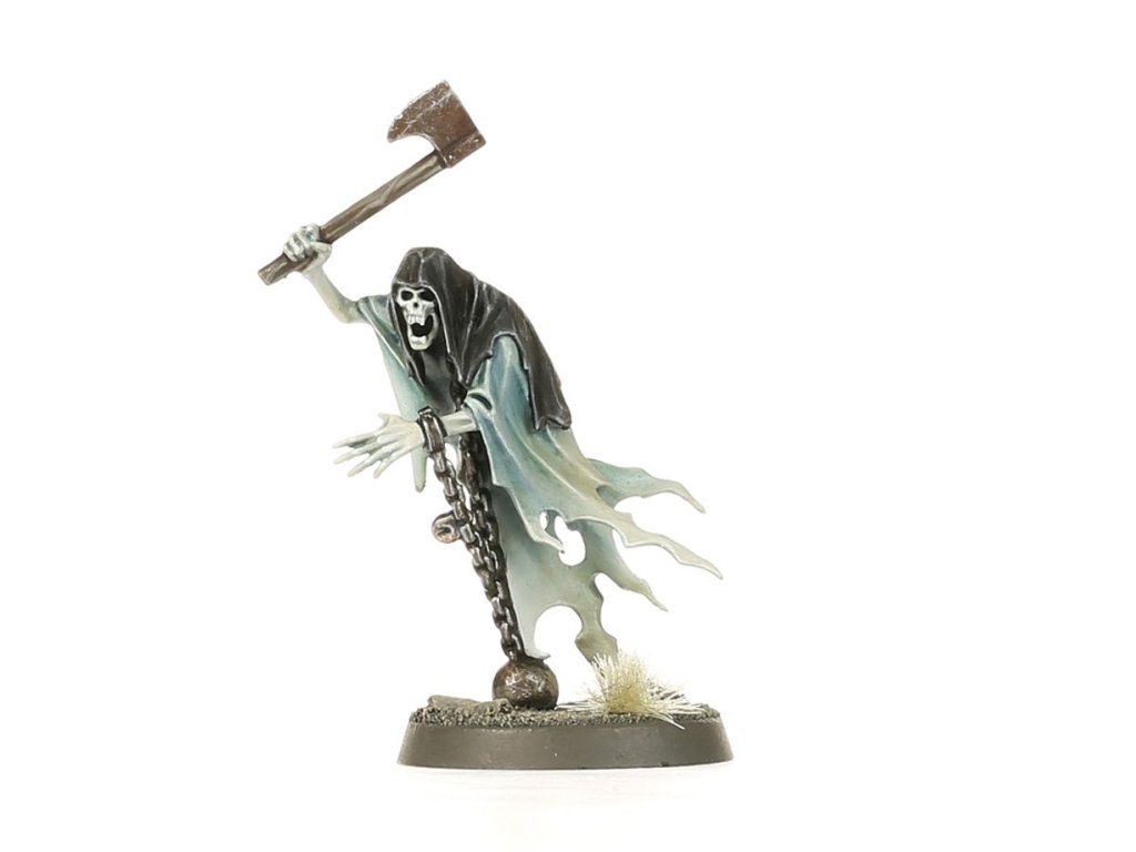 The most numerous of all the spirits that join Nighthaunt processions are the Chainrasp Hordes. These gheists are created from the spirits of the most vicious and irredeemable criminals to have lived in the Mortal Realms. They are lesser spirits, held together in the afterlife by nothing other than their own never-ending spite and all-consuming madness, a negative energy which saps the will of their enemies. Chainrasps may have thought death to be an escape from terrible imprisonment but, in truth, it was merely the beginning.