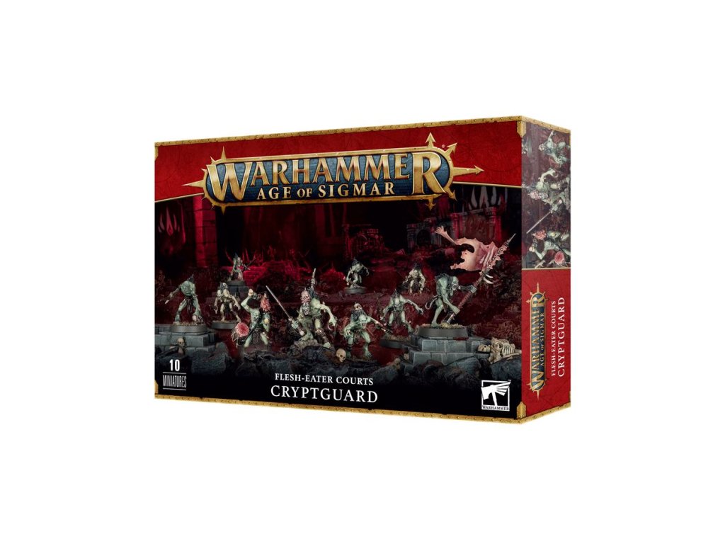 The Cryptguard are ghouls of uncommon tenacity and worth, elevated to an elite station by performing some great feat of endurance in the sight of their vampiric liege. Charged with protecting their unholy masters, these faithful mordants wield weapons gifted from the royal armoury – rusted, gore-caked blades, soaked in decades of maddening energies and infectious filth.
