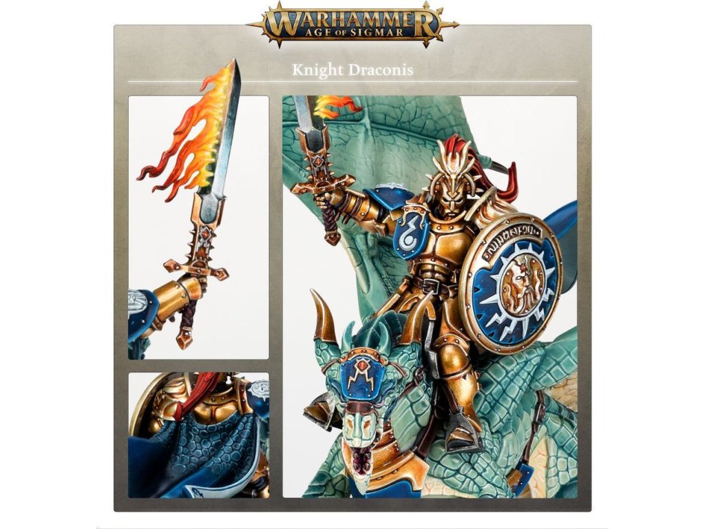 Smash through enemy lines with the might of Sigmar's Draconith allies, bearing elite warriors of the Extremis chamber. These fast and deadly Monster units are just as capable of roasting their foes with wyrmflame as they are skewering them on the end of a blazing aeonfire blade, and their ancient draconith heritage also lends them an innate resistance to magic. The Knights-Draconis are especially valuable when leading Stormdrake Guard from the front, spurring them to even greater acts of heroism.