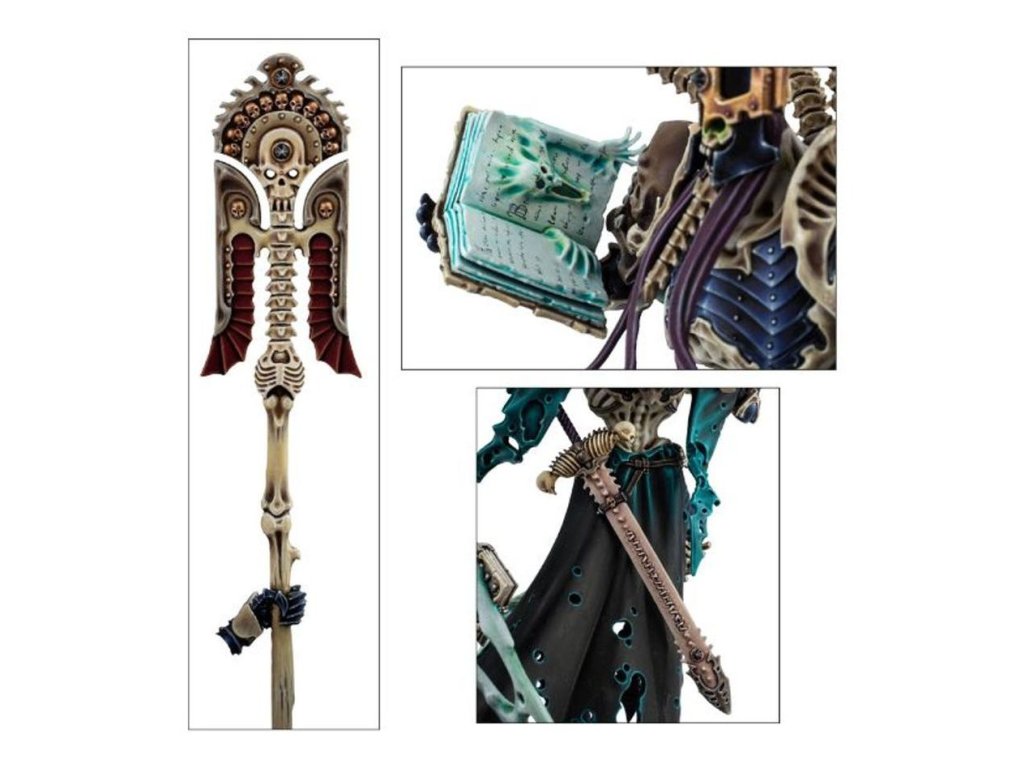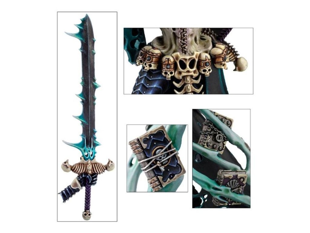 This multi-part plastic kit is equipped with an array of Nagash’s most precious artifacts. Upon his brow sits the Crown of Sorcery, while his hand grips either Alakanash, the Staff of Power or Zefet-nebtar, the Mortis Blade. He is clad in Morikhane, the Black Armour, and orbiting around his sorcerous frame are nine ancient books, each one containing the terrible secrets of animating the dead.