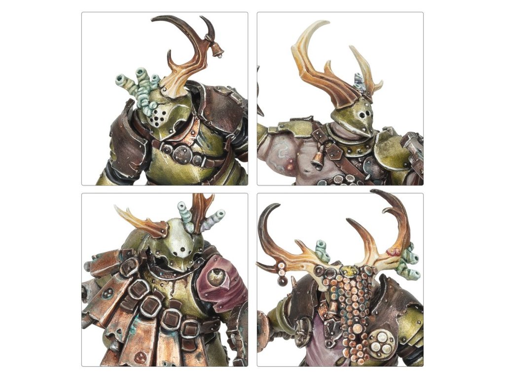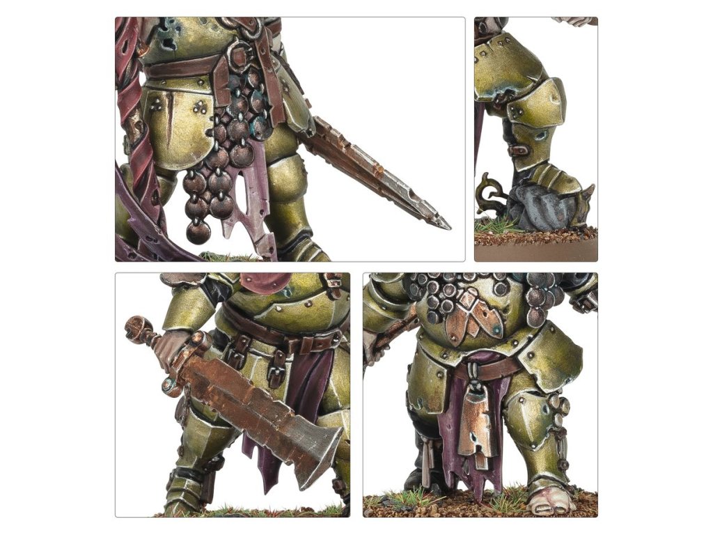 Rotswords are Nurglite footsoldiers who exude an acrid stink that causes even the most stalwart of foes to baulk in disgust. Fevered and eager, they wield their ruined but lethal blades with terrifying vigour and abandon.