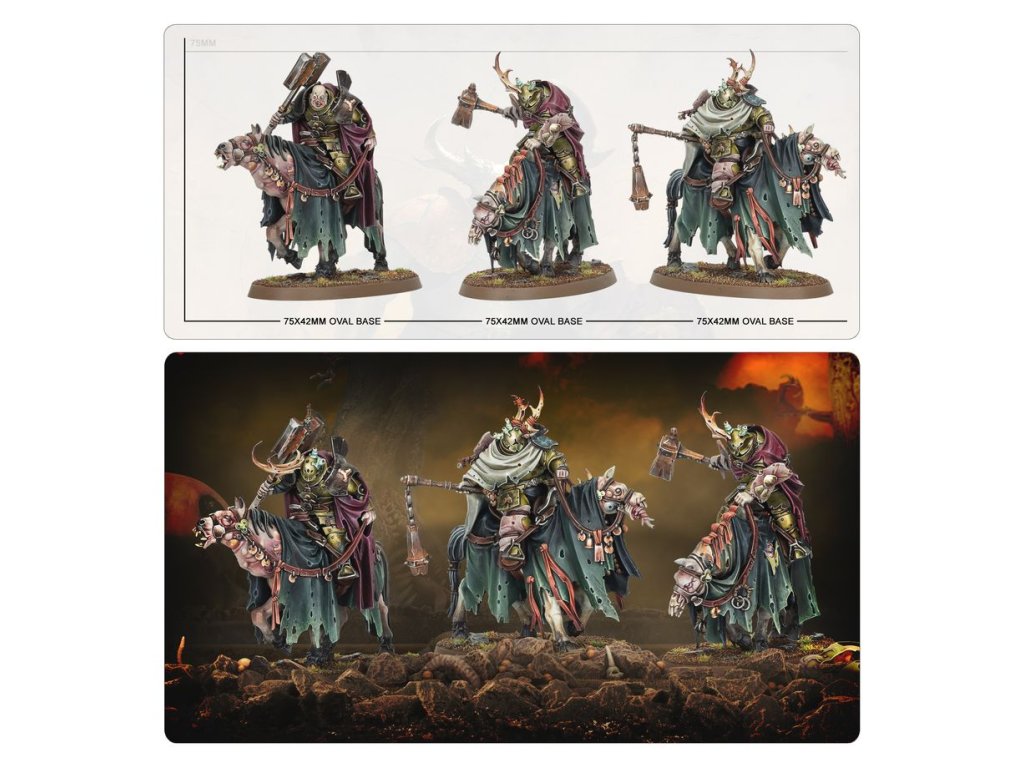 Putrid Blightkings carve their way forward with slime-encrusted blades, hammers, and axes. Their rotting bodies emanate an unnaturally offensive odour that impedes the concentration of nearby priests and wizards.