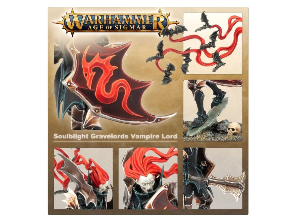 Elder vampires often continue to grow in power as the years tick by, their arcane and martial might growing steadily even as the paragons of mortal races wither and die. Many take up the mantle of a Vampire Lord, commanding legions of undead servants and scores of lesser Soulblight vampires in grand campaigns of conquest across the Mortal Realms. Such is the contempt they have for mortal life, that a Vampire Lord will gladly pause in the middle of battle to drain a worthy foe of their blood before continuing the slaughter of their comrades.