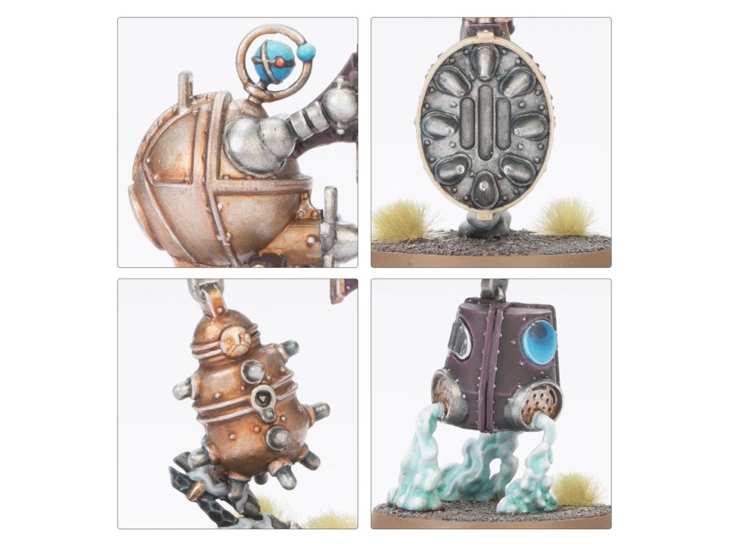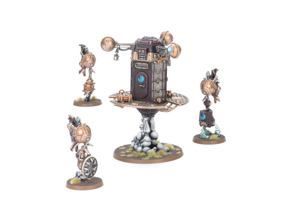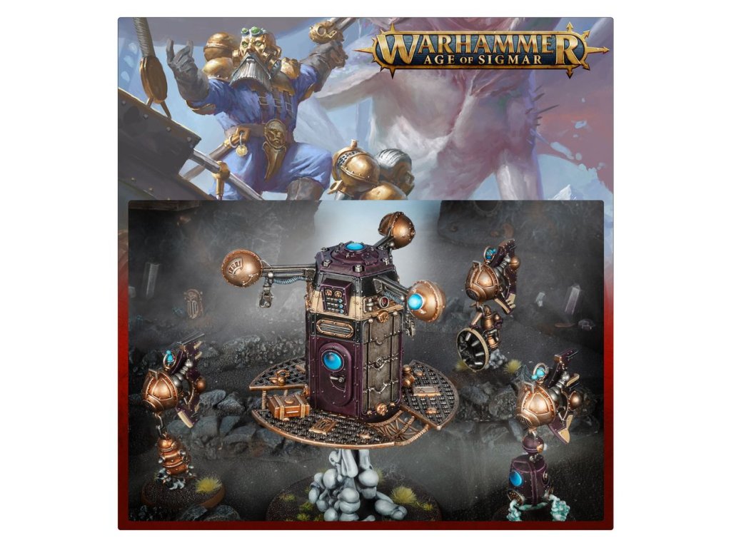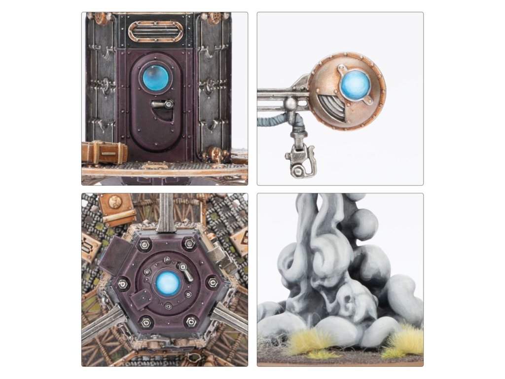 Zontari Endrin Docks are cutting-edge innovations from the finest endrineering minds in the sky-empire. They're designed to allow the Kharadron to defend their most precious assets. Each dock deploys aether-powered Auto-Endrins that seek out enemy formations before detonating or deploying anti-magic measures.