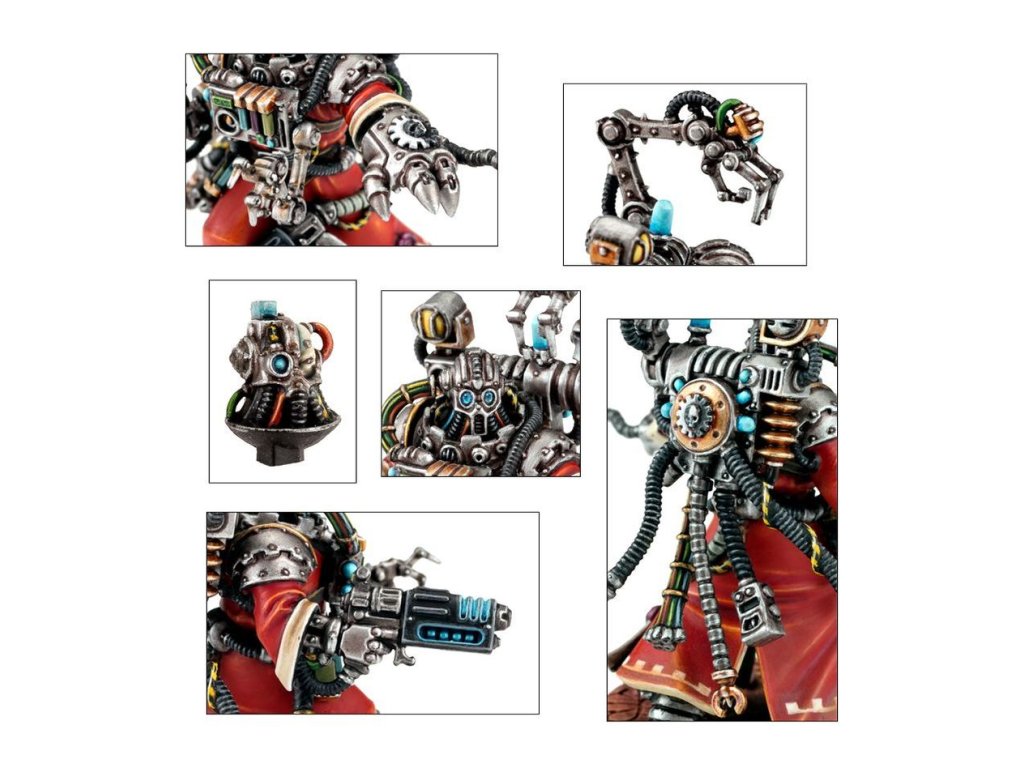 This ninety-five component multi-part plastic kit contains everything you need to make two Kastelan Robots and one Cybernetica Datasmith. The Kastelan Robots are armed to where their teeth would be, if they had teeth - options include two sets of power fists, two sets of twin-linked phosphor blasters and a choice of carapace-mounted weaponry (incendine combustor or yet another phosphor blaster - two of each are supplied). The Cybernetica Datasmith is armed with a gamma pistol, dataspike and a servo arm assembly featuring a rivet gun. A prehensile socket drill allows him to reprogram the Kastelan Robots on-the-fly. He also features a choice of two heads.