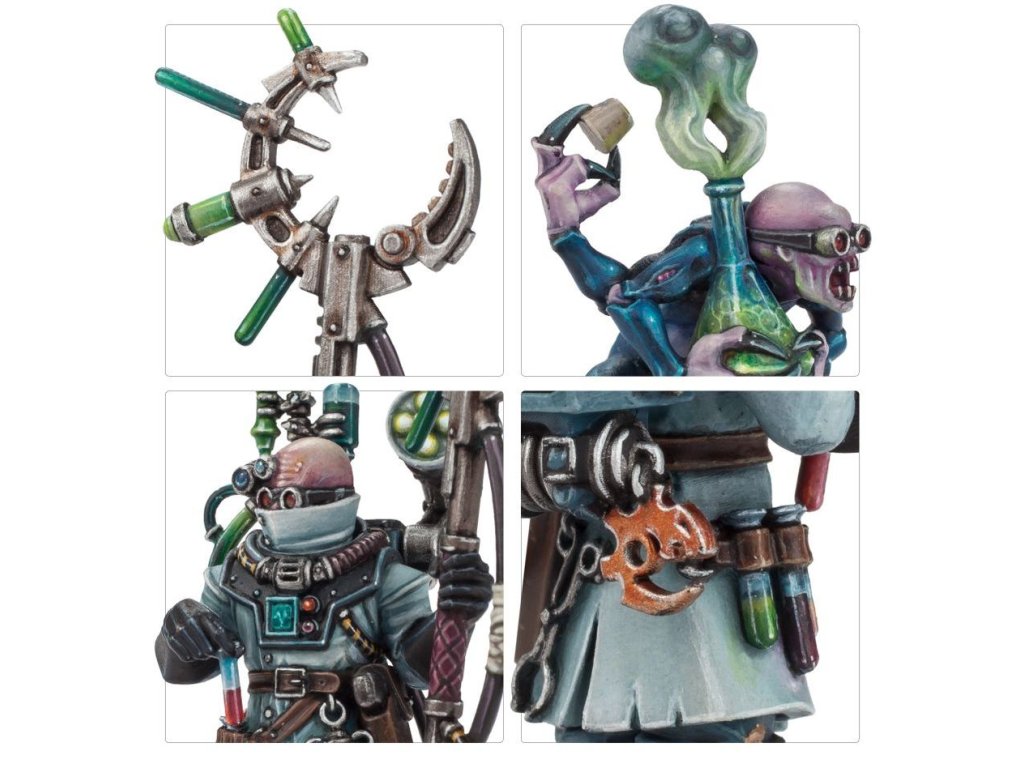 A master of gene-manipulation and bio-alchemy, the Biophagus is responsible for industrialising the process of indoctrination and infection. They concoct devious new contaminants that infect their victims with xenos genetics, morphing their body and mind, and rendering them susceptible to the sinister influence of the cult. A Patriarch may grant the Biophagus a Familiar, a scuttling assistant that sneaks into safeguarded facilities to disperse chemical agents into watersumps or air filtration bellows.