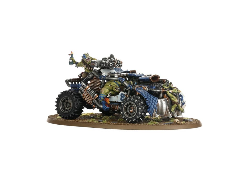 The roar of overcharged engines and the crackle of flames herald the arrival of the Boomdakka Snazzwagons. Lightly built speedsters based around looted vehicle frames, Snazzwagons are clad in hastily welded scrap armour. Their drivers go hell for leather, as they know that a single artillery shell is likely to blow their ride to smithereens. Of course, the enemy has to hit them first, and as the Snazzwagons fishtail and skid madly through hails of incoming fire, it quickly becomes apparent that this is no mean feat! Gangs of howling Burna Boyz cling on, flinging burna bottles – the resulting inferno is as dangerous to the Orks as it is their foes, but the crew is too busy having fun to worry about paltry concerns like getting cremated in a firestorm…