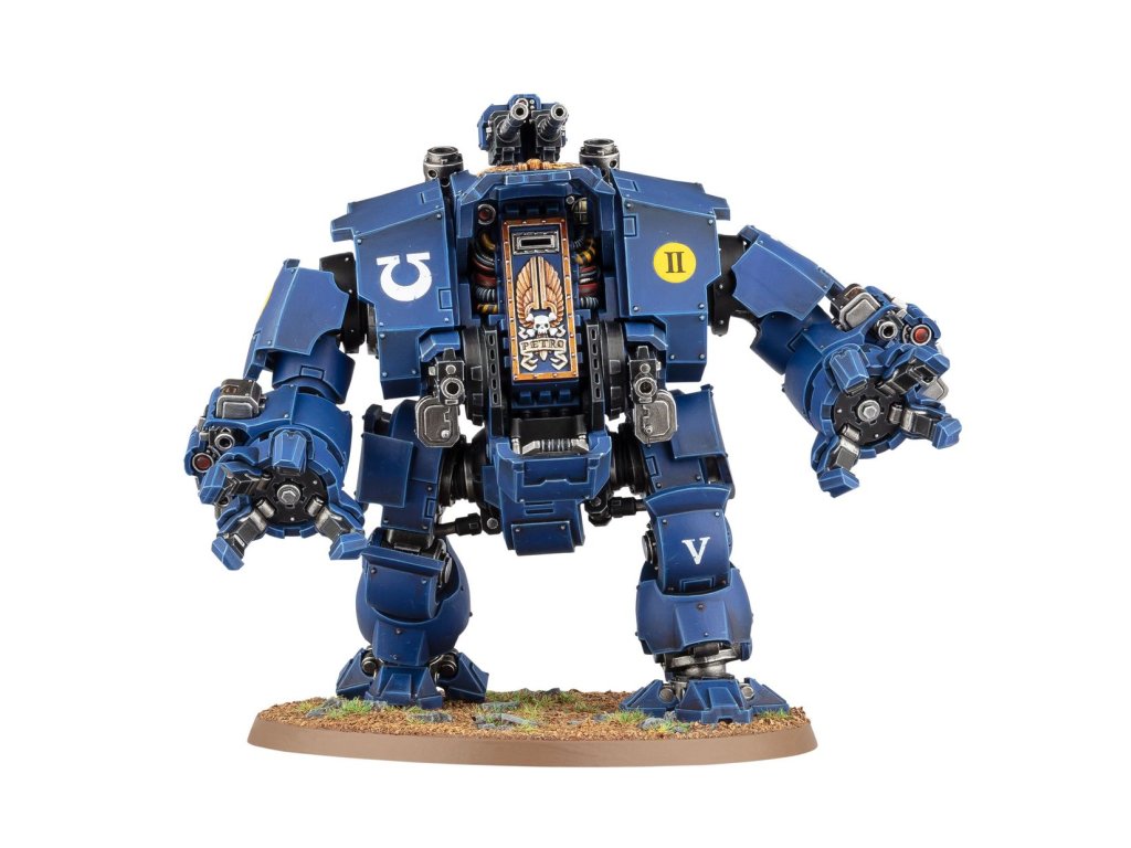 The Brutalis Dreadnought is a line breaker and a terror weapon – a bipedal combat walker, armed for close combat and piloted by a fallen hero of its Chapter. This hulking war machine lays down a hail of covering fire as it storms towards the enemy lines, but the greatest threat lies in its massive arms. Mounted with crushing fists or ceramite-sheathed talons, these can crush an armoured warrior like spoiled fruit or punch through a bunker wall like parchment.