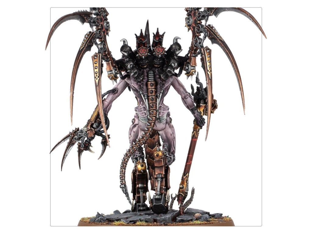 Vashtorr is the Soul Forge King, a daemonic demigod of unrestrained invention and abominable artifice. When the Arkifane takes physical form, it is as a horror of pallid flesh stretched over infernal mechanisms, soaring to battle amidst a cloud of lightning and smog. Vashtorr deals destruction with every whirring step, unleashing techno gheist curses upon his foes even as he fashions enhancements for his indentured daemon engines from the raw stuff of realspace.