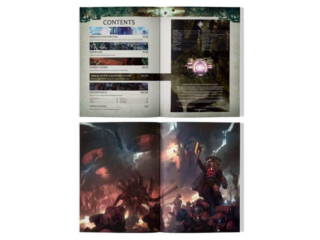 – Rules for using the Leagues of Votann in games of Warhammer 40,000, with 21 datasheets, five Detachments, and the Prioritised Efficiency army-wide rule
