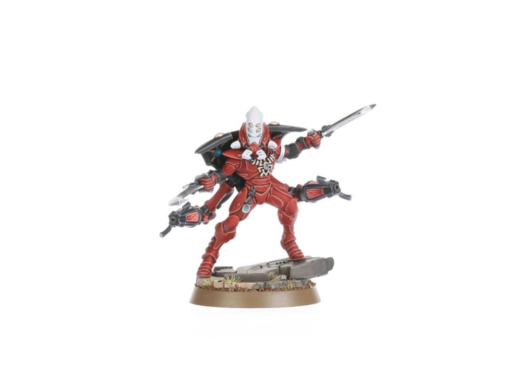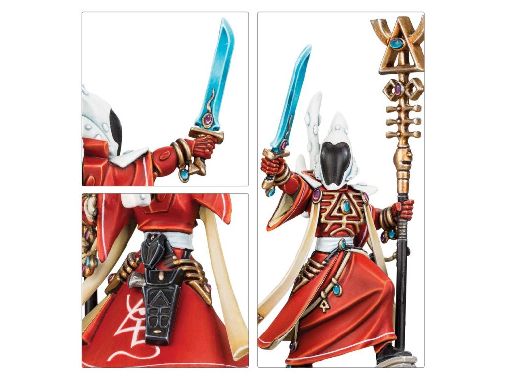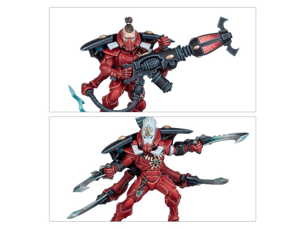 Spiritseer Kygharil guides their small band of determined Aeldari through the Webway to defend their craftworld's hidden gateways and ancient, precious ruins. Lightning-fast Dire Avengers make up the bulk of this swift and deadly Combat Patrol. Joining them are a squad of elite Wraithblades armed with deadly ghostaxes, and a unit of Warp Spiders who attack by making short but dangerous leaps through the Immaterium before firing clouds of razor-sharp monofilament wire at the foe.