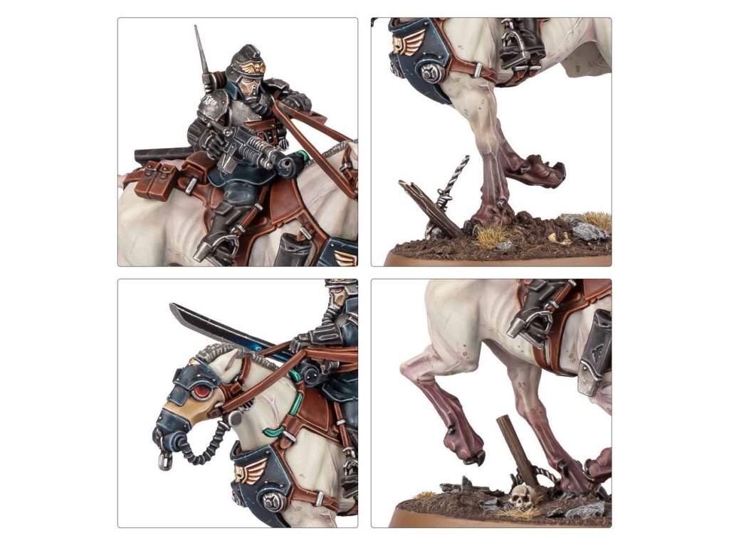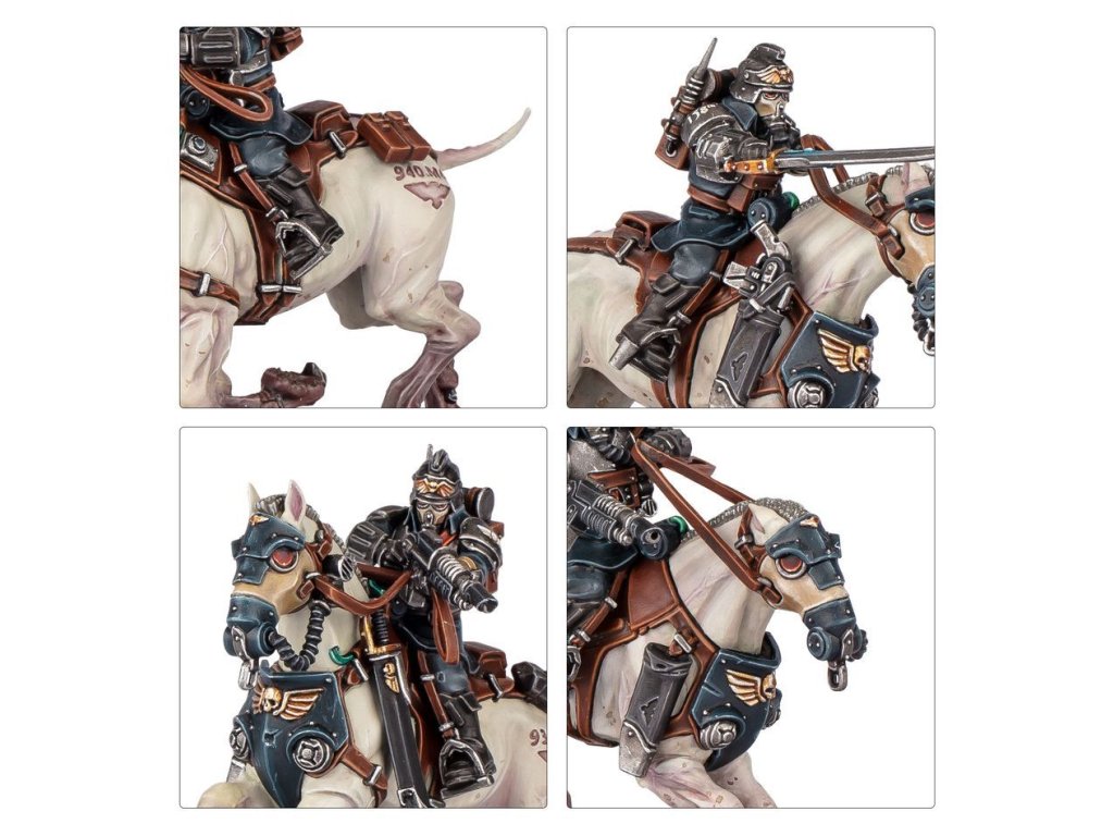 The miniatures in this kit are easy to customise. The Death Riders can each be armed with a power sabre, frag lance, or Death Rider lascarbine. There are parts to build an optional squad leader, as well as numerous cosmetic parts, including various designs of pouches.