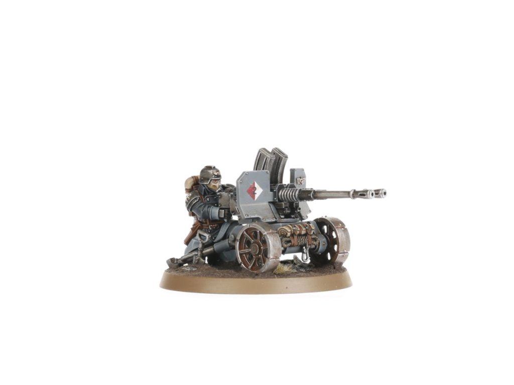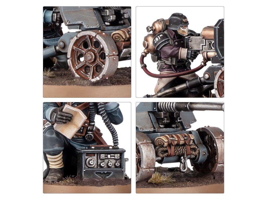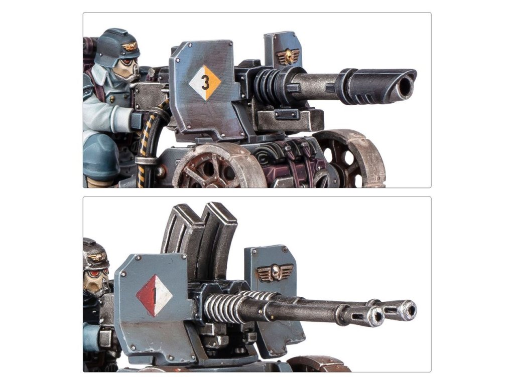 The Heavy Weapons Squad gunners can be armed with a lascannon, a Krieg heavy flamer, or a twin Krieg heavy stubber, along with interchangeable backpacks and accessories. The Fire Coordinator can be built either leaning on their knee or consulting a map of the battlefield.