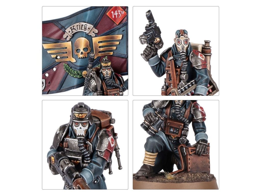 The Death Korps of Krieg will stop at nothing to prove their loyalty to the Imperium, casting aside their lives in brutal wars of attrition. They rely on the weight of numbers, an unflinching perspective on war and sacrifice, and the use of heavy siege weapons to grind their foes down.
