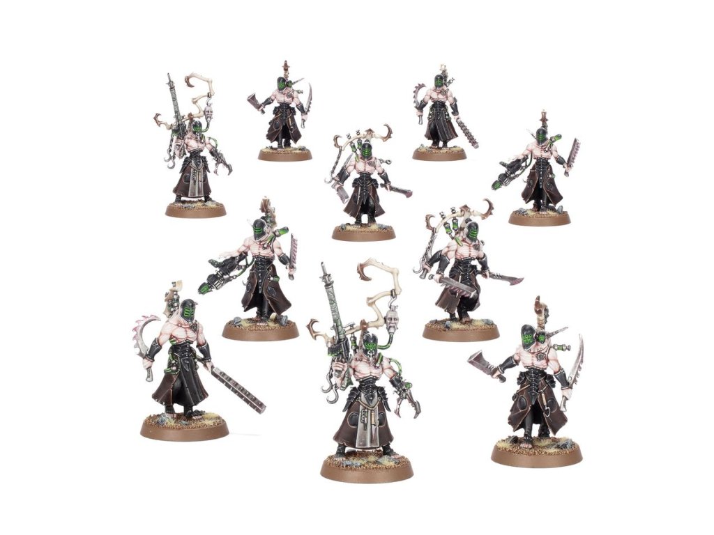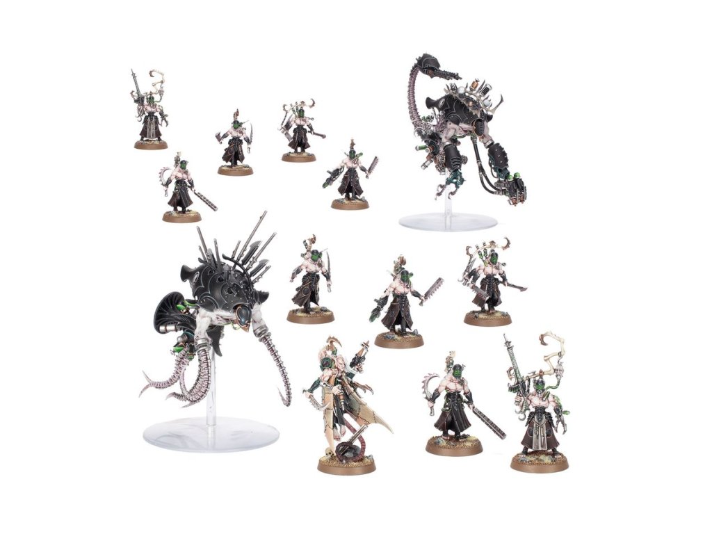 If you want to launch a realspace raid to claim more victims for your experiments, this box is the perfect way to start a new Drukhari collection – or expand an existing army – and save money compared to buying the kits separately. The Haemonculus is accompanied into battle by a unit of cruel Wracks, while a Cronos and a Talos provide heavier support as you inflict pain upon unsuspecting foes. These 13 plastic miniatures represent a complete Drukhari Coven of Agonies for use in tight, tactical Combat Patrol games of Warhammer 40,000.