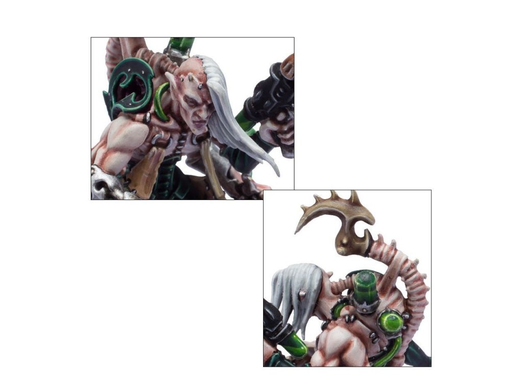 The Haemonculus Covens of the Drukhari are known for being sadistic, twisted flesh crafters. Their ranks are filled with mutated Wracks, supported by hulking Talos and Cronos pain engines – tortured creatures that revel in raiding realspace. Haemonculus masters are eager to test their creations in the crucible of battle, and war gives their agonised forces a chance to inflict pain and suffering upon their ill-fated victims.