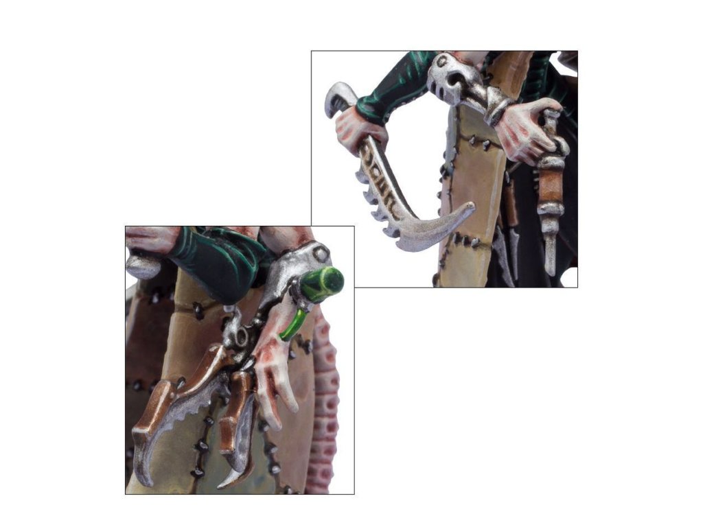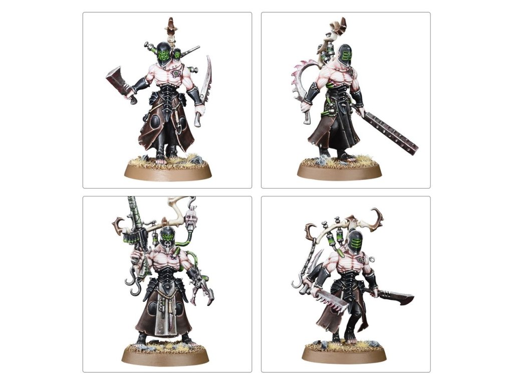 The Wracks can be equipped with a host of interchangeable weapons and equipment, including torturer's tools, two liquifier guns, two ossefactors, two hexrifles, two stinger pistols, masks, and backpacks. There are also parts to build an Acothyst who can additionally be armed with an agoniser, power weapon, or scissorhand.