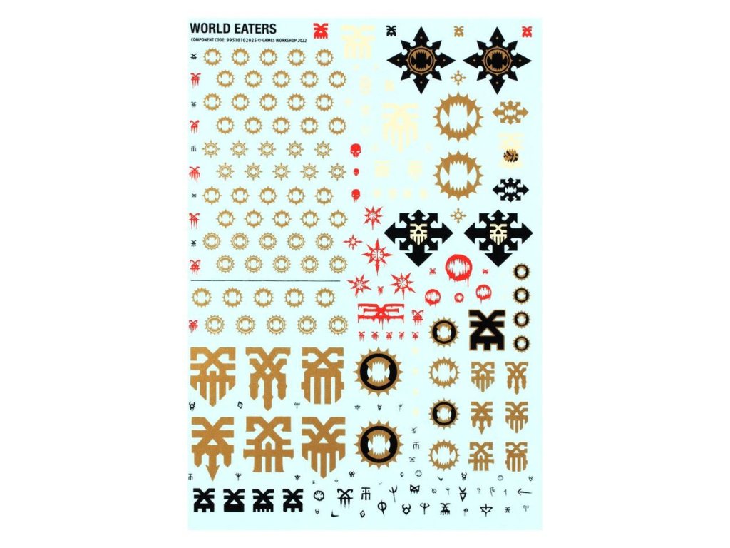 This kit comprises 358 plastic components, 1x Citadel 60mm Round Base, 2x Citadel 40mm Round Bases, 10x Citadel 28.5mm Round Bases, and 10x Citadel 32mm Round Bases. This set also includes 2x World Eaters transfer sheets, each containing 200 high-quality waterslide transfers to customise your miniatures.