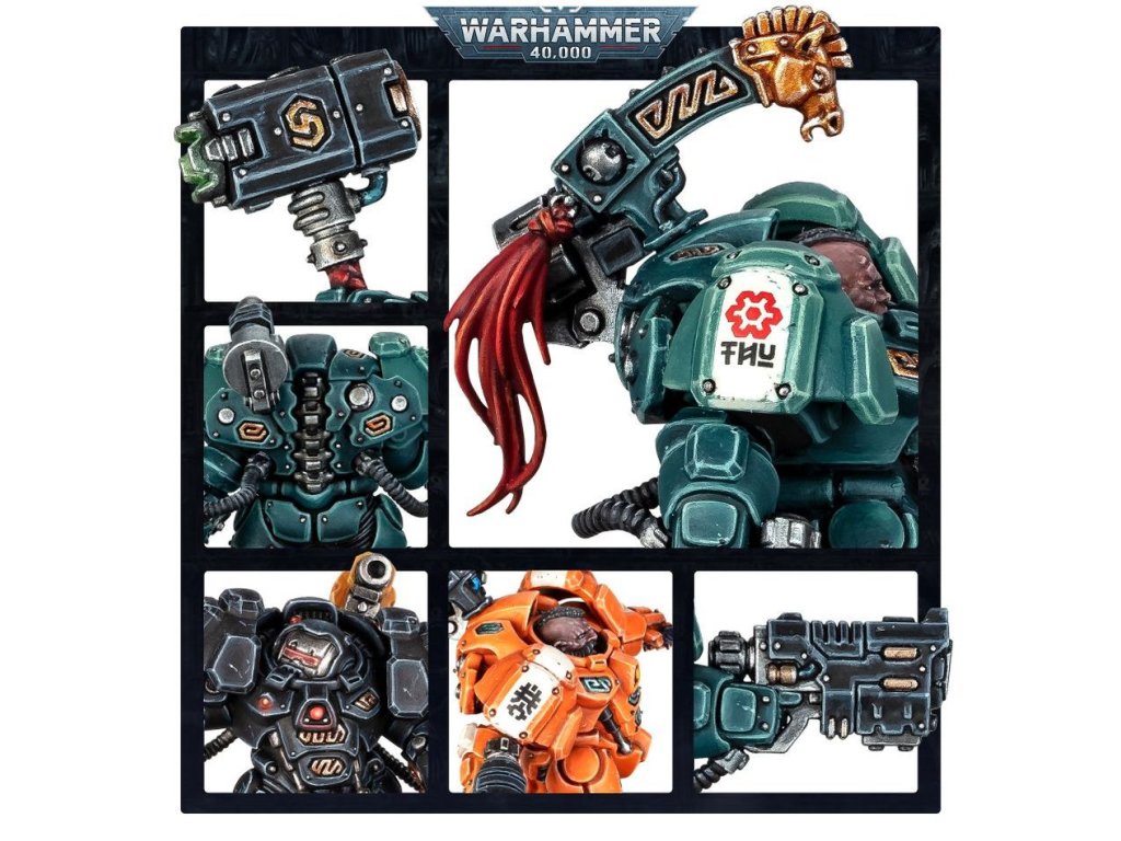 This multipart plastic kit builds five Einhyr Hearthguard, elite Kin equipped with the finest armour and weapons available. Their bulky, rune-etched exo-armour allows them to withstand concentrated enemy fire, and incorporates a shoulder-mounted grenade launcher. Each model can be armed with a choice of ranged and melee weapons – an EtaCarn plasma gun or volkanite disintegrator for blasting away at a distance, and a concussion gauntlet or plasma blade gauntlet for close fighting. The kit includes 19 interchangeable heads – 12 unique bare heads, five helmets, and two helmets with open visors. One model can also be built as a Hesyr leader, equipped with a concussion hammer and a choice of two different crests.