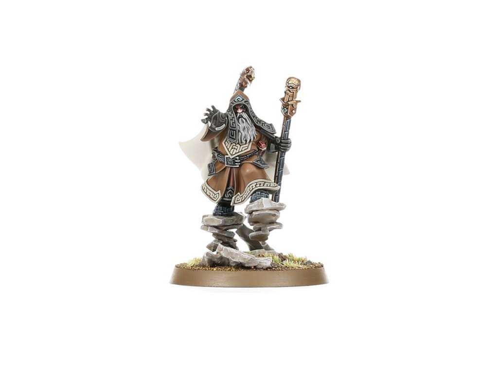 The Grimnyr – also known as Living Ancestors – are privy to the wisdom of the Votann, and the closest analogue to priests among the secular Leagues of Votann. Engineered with a psychically-active cloneskein that allows them to activate barrier-tech such as ward staves and energy-focusing CORVs, these Kin are able to rouse the fury of the immaterium against their foes.