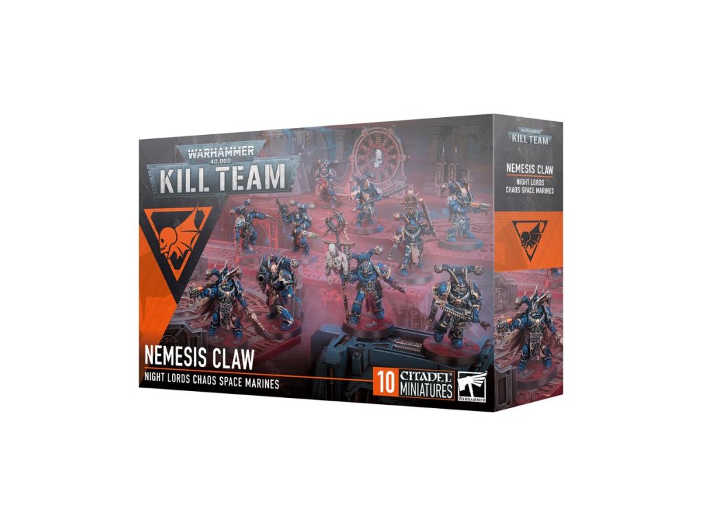 This multipart plastic kit allows you to build 10 Nemesis Claw Chaos Space Marines – twisted and sadistic killers from the Night Lords Legion. These miniatures can be used as Nemesis Claw kill team operatives in games of Kill Team, or fielded with Chaos Space Marines armies in games of Warhammer 40,000. This kit includes various weapons, heads, and accessories, allowing you to assemble a unique squad and build some as specialists for your kill team – such as a cruel Fearmonger, grotesque Ventrilokar, and a Skinthief wielding a vicious Nostraman chainglaive.