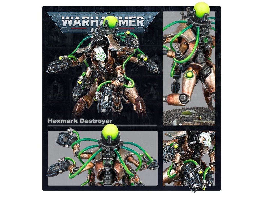 Hexmark Destroyers were once Deathmarks. Bursting from their dimensional oubliettes like ambush predators, these hunchbacked monsters unleash inescapable hails of enmitic fire. Independent ocular targeting and optimised firing patterns leave their prey with no escape.