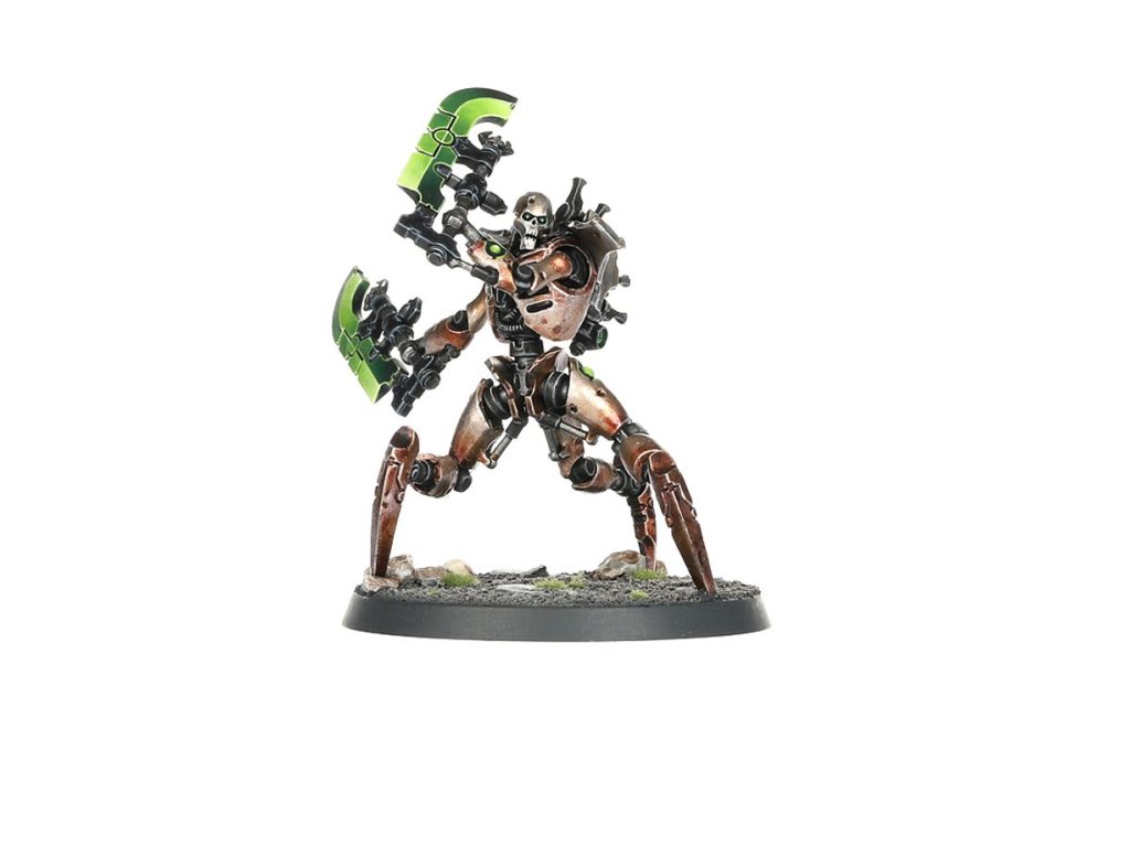 Striding forward in a rush of ungainly steps, their weaponised limbs sweeping in a whirlwind of gore, Skorpekh Destroyers feed their need to kill whenever they are unleashed upon the battlefield. Nothing else can override the hard-wired desire to kill that empowers these deranged Necrons.
