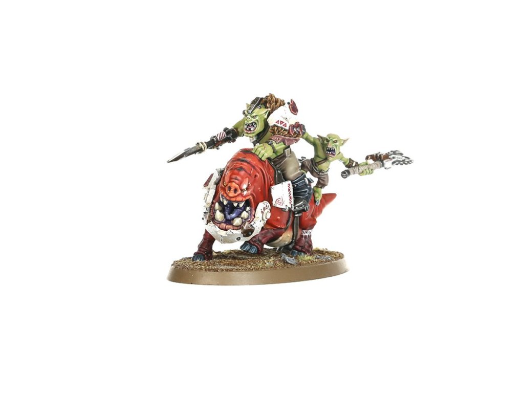 The kit is comprised of 104 plastic components which allows you to assemble one Nob on Smasha Squig, three Squighog Boyz, and one Bomb Squig, and is supplied with 1x 90mm Oval Base, 3x 75mm Round Base, and 1x 25mm Round Base. These miniatures are supplied unpainted and require assembly – we recommend using Citadel Plastic Glue and Citadel paints.