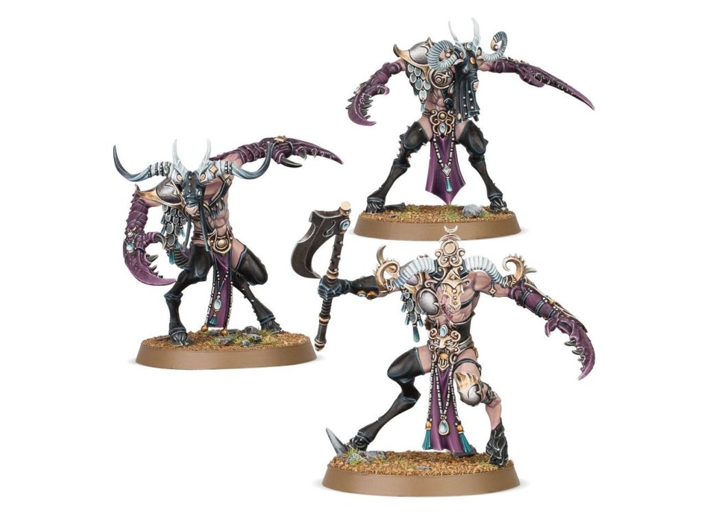 Though they look almost delicate, these savage beasts hit with hurricane force. Possessed of both speed and unnatural strength, even a small unit can effectively harass foes, while a concerted attack can break even the largest formations. One model can be built as a Slake-Horn, the leader of this unit.