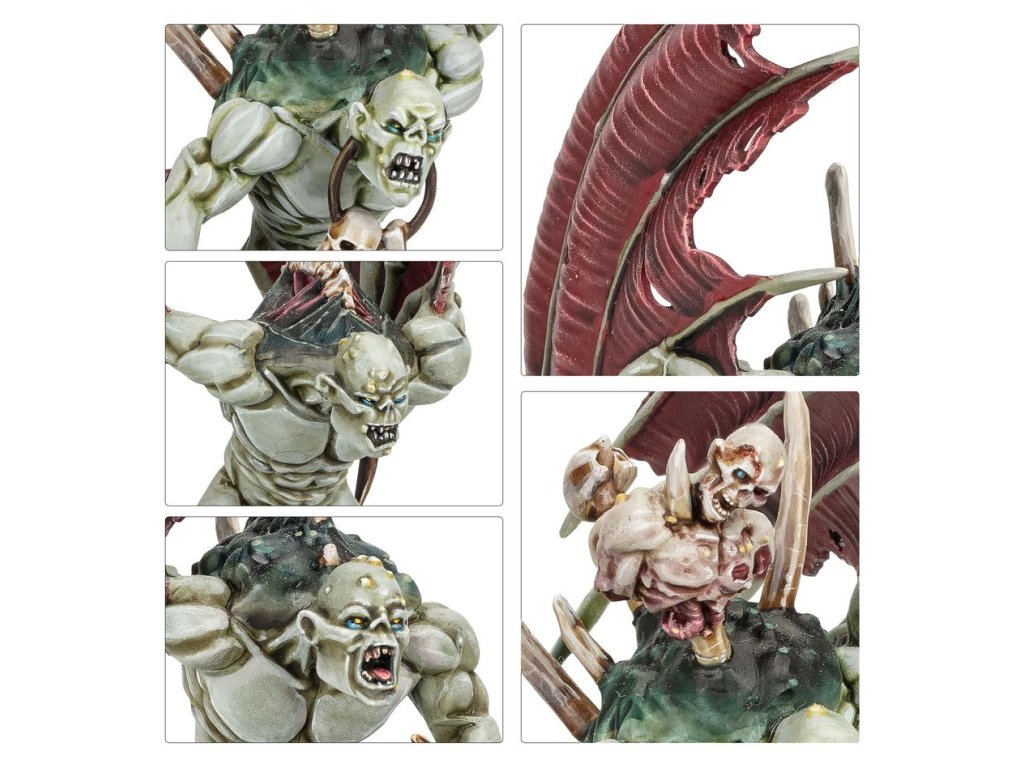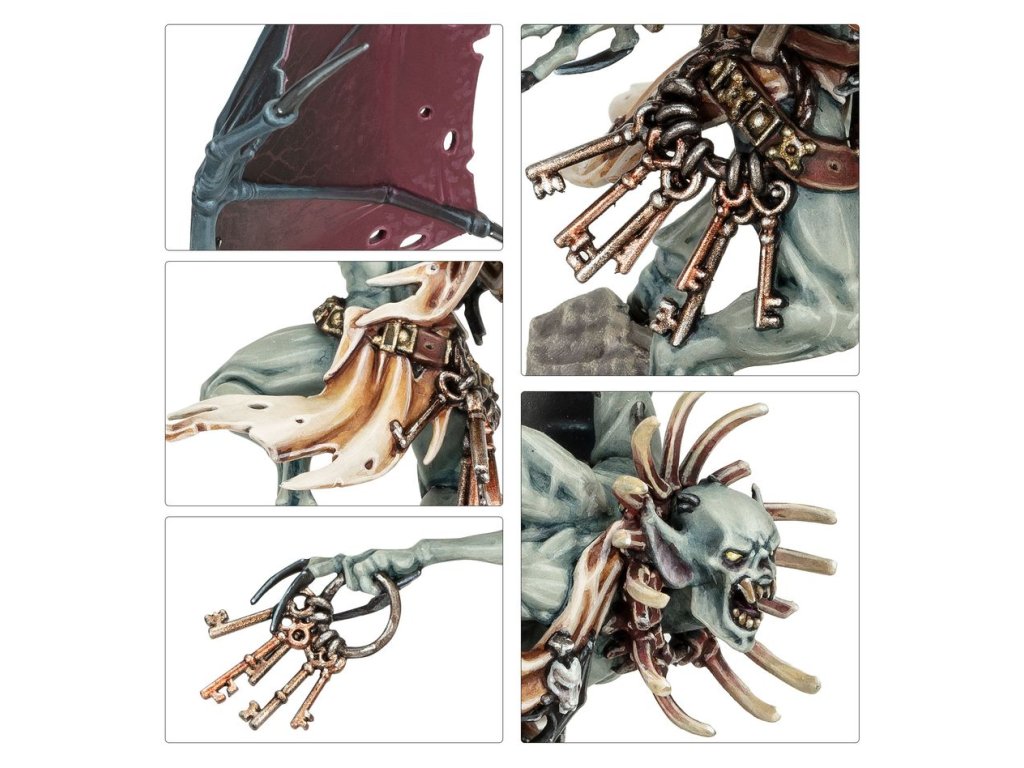 The Charnel Watch serve as border guardians for the sovereign domains of the Flesh-eater Courts. An Abhorrant Gorewarden commands the detachment as winged Crypt Flayers patrol the skies. Crypt Horror 'knights' take up residence in the keeps, guarding them from trespassers, while a Royal Beastflayer warband harries their prey through the hills and furrows of their hunting grounds.