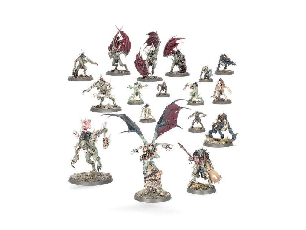 If you desire to protect the domains of your liege lord, this box is an ideal way to start a new Flesh-eater Courts collection – or expand an existing army – and save money compared to buying the kits individually. Led by a savage Abhorrant Gorewarden, and protected by elite Crypt Flayers, they are a force to be reckoned with. Crypt Horrors surge forward to take on tough units, while the Royal Beastflayers control the battlefield and take objectives. These miniatures comprise a complete Spearhead force, meaning you're ready to jump into tight, tactical games and protect your lands right out of the box.