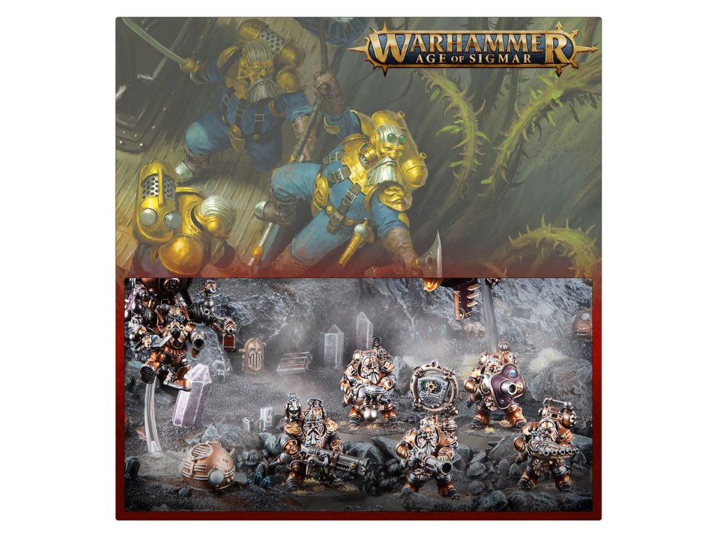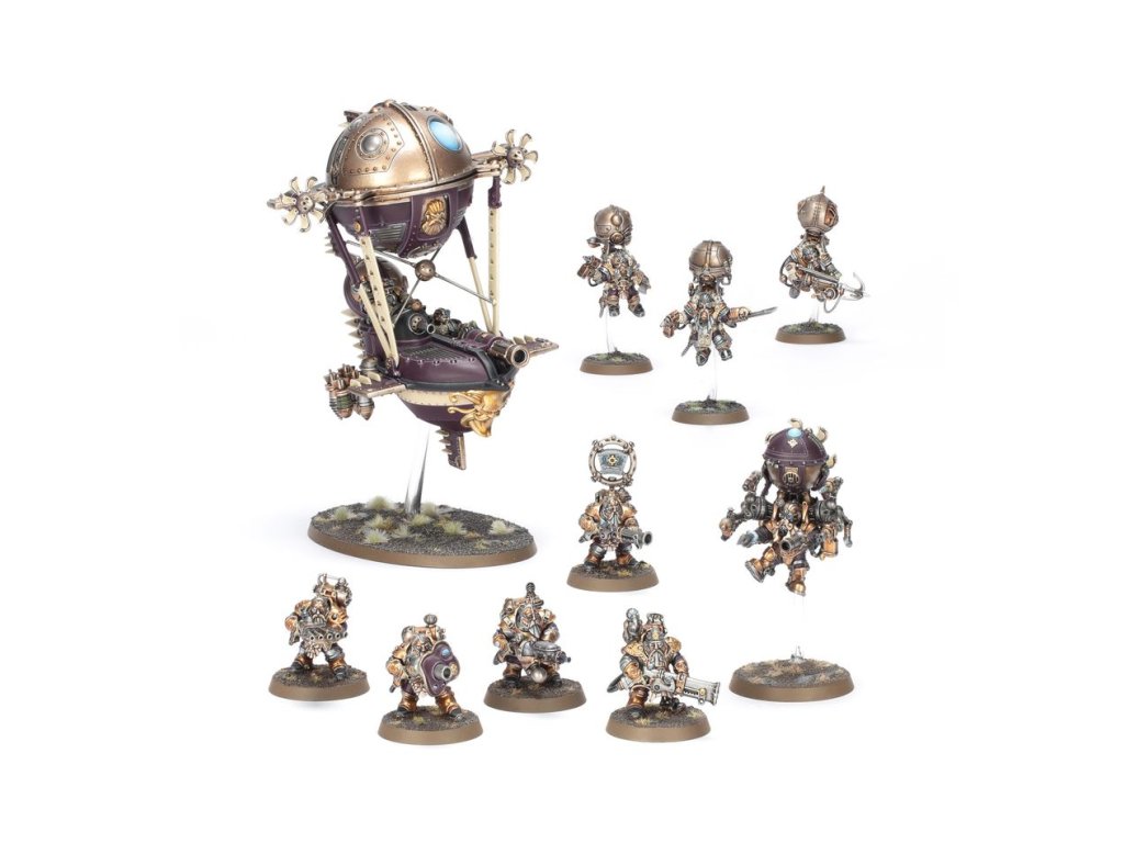 If you want to stake your claim on the Mortal Realms, this box is an ideal way to start a new Kharadron Overlords collection – or expand an existing army – and save money compared to buying the kits individually. A flying Grundstok Gunhauler supports the force by commanding attention, soaking up enemy firepower, and taking out priority targets with heavy weapons. The highly mobile Endrinriggers are everywhere you need them to be, while the heavily armoured Grundstok Thunderers bring their lethal firepower to bear while holding ground. An Endrinmaster with Dirigible Suit leads the way. These miniatures comprise a complete Spearhead force, meaning you're ready to jump into tight, tactical games and start enforcing the Kharadron Code straight out of the box.
