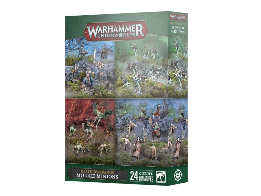 This kit collects four Death-themed warbands for Warhammer Underworlds. All the miniatures are push-fit, moulded in coloured plastic, and include scenic bases on the frames so you can start playing quickly. You'll also find warscroll cards and fighter cards for each warband. The Sons of Velmorn are a versatile Flex warband, and The Skinnerkin are an aggressive Strike warband. The Thorns of the Briar Queen are a tough Take and Hold warband, and The Exiled Dead are a Mastery warband which rewards players for careful management.