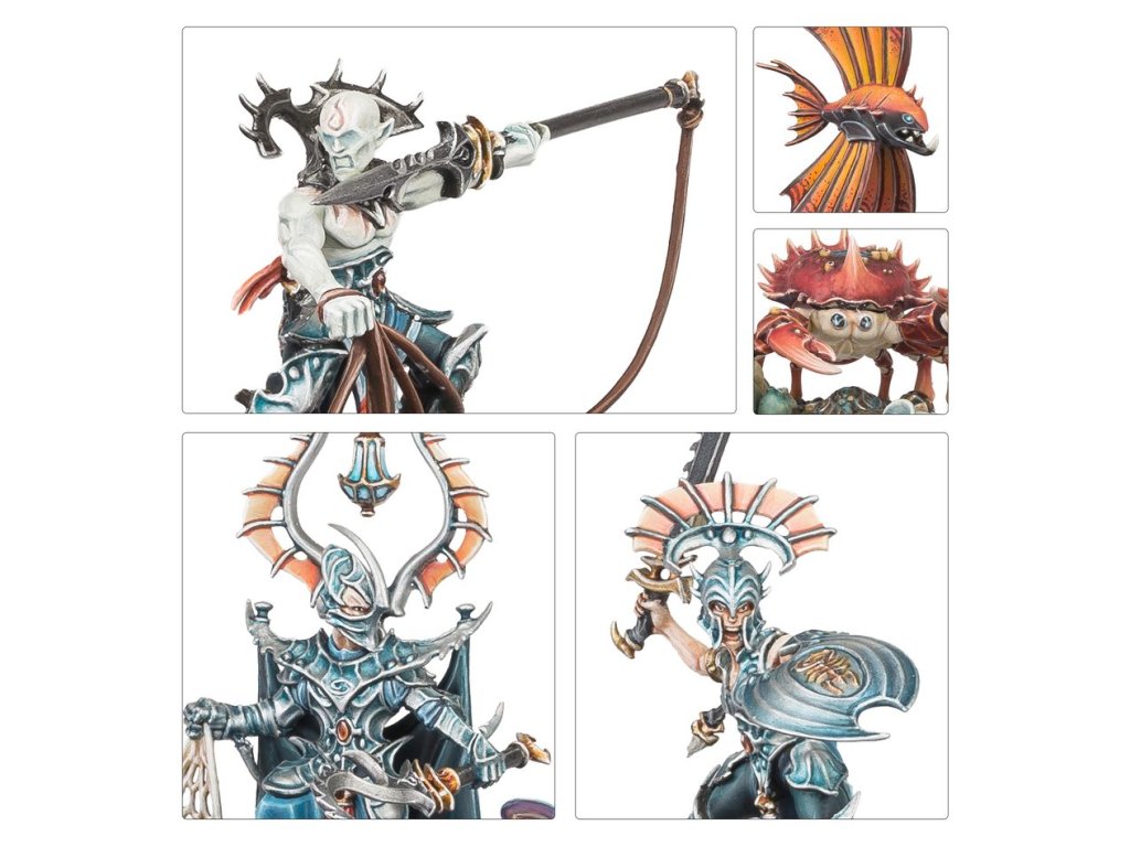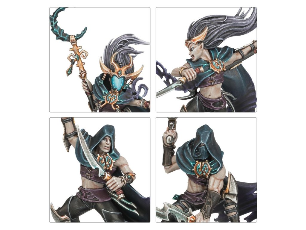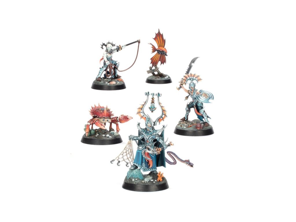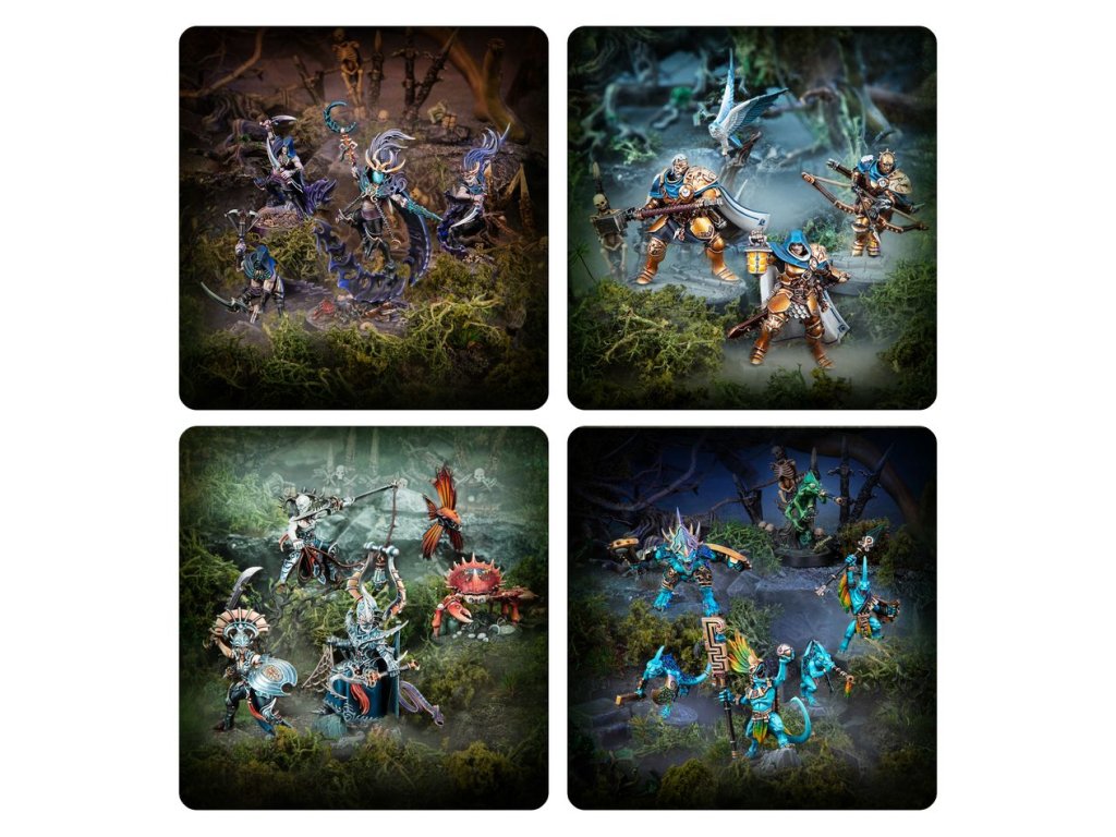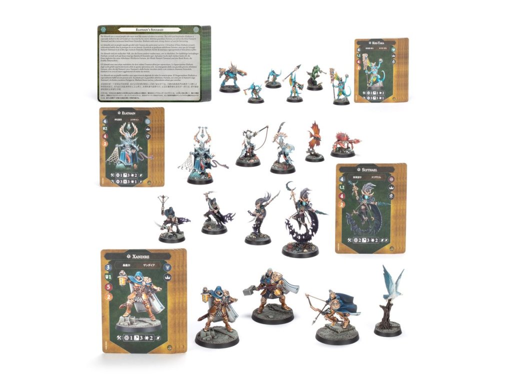 This kit collects four Order-themed warbands for Warhammer Underworlds. All the miniatures are push-fit, moulded in coloured plastic, and include scenic bases on the frames so you can start playing quickly. You'll also find warscroll cards and fighter cards for each warband. The Shadeborn are an aggressive Strike warband, Xandire's Truthseekers are a versatile Flex warband, The Starblood Stalkers are a tough Take and Hold warband, and Elathain's Soulraid features the Mastery playstyle, which rewards players for careful management.